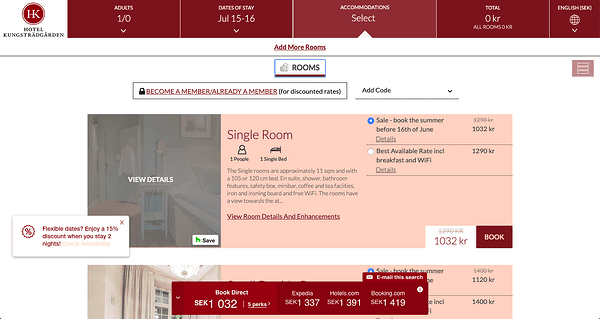 情绪去旅行,特别是国际旅行显著减少,酒店可能难以说服访问者转换。bd手机版网页有限责任公司半岛手机端下载然而,这并不意味着没有事情可以做。当面对一个小得多的水平的需求,酒店正在寻找方法来提高每个预订的平均值。bd手机版网页有限责任公司半岛手机端下载鼓励再保持一个有效的策略是向客人提供的好处已经寻求书煽动他们和你一个晚上。考虑到这一点,半岛手机端下载酒店Kungstradgarden发起了一系列智能指出在他们的预订引擎针对游客预订两个晚上。强调保持一个额外的好处的消息一个或两个晚上只对那些游客,给他们的动机来扩展他们的预订。通过有针对性的信息,酒店在瑞典推动客人已经有可能将增加他们半岛手机端下载bd手机版网页有限责任公司的预订价值。