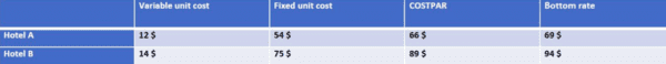 CostPAR为您提供特定时间的房间费用。例如,您可能想要计算每天的成本成本。要做到这一点,你需要用固定和可变cots除以可用房间和可用天数的总数。