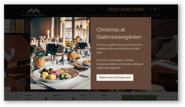 那年夜饭呢?Stallmästaregården再一次为他们的访客提供了诱人的服务,其中包括一顿三道菜的晚餐。在冬季,为游客提供额外的刺激可以帮助他们完成完美假期的愿景。Stallmästaregården的服务就是为他们的酒店客人提供这样的服务,将他们与竞争对手区分开来,半岛手机端下载并最终提高他们的直接预订。